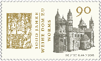 Mit Freude hatte der Briefmarkensammlerverein Worms e.V. im November 2016 die Nachricht erhalten, dass sein Vorschlag, den Wormser Dom, einer der drei bedeutenden Kaiser-Dome am Rhein, zu seinem Jubiläum im Jahr 2018 mit einer Sondermarke zu ehren, vom Finanzministerium angenommen wurde. Nun erscheint am 7. Juni 2018, passend zur Jubiläumswoche, die Sondermarke zu 90 Cent.