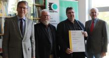 Am vergangenen Freitag wurde dem Landesverband Südwest die Picasso-Rarität zur Ausstellung in Sindelfingen übergeben. Dieter Schaile, 1. Vorsitzender des LSW, nahm die Poskarte aus den Händen von Christoph Gärtner entgegen.