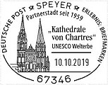 Passend zum 60-jährigen Partnerschaftsjubiläum der beiden Städte Chartres und Speyer erscheint am 10. Oktober 2019 die Sonderbriefmarke „Weihnachten“ mit einem Motiv aus einem Kirchenfenster der Kathedrale von Chartres. Zur Vorstellung dieses Sonderpostwertzeichens lädt Oberbürgermeisterin Stefanie Seiler am Donnerstag, 10. Oktober 2019, 11 Uhr in den Historischen Ratssaal der Stadt Speyer, Maximilianstr. 100, ein.