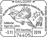 Gaildorfer Großtauschtag am 3. November 2019 - Feldlerche - Vogel des Jahres im Sonderstempel