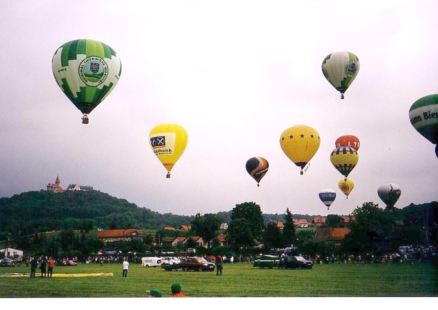 mit einem Ballon vom Startgelände aus befördert. Ein zusätzlicher