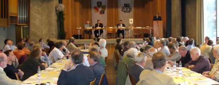 Fünf-Tälerstadt Geislingen an der Steige - Mittelpunkt der Verbandsphilatelie! 55. Landesverbandstag des LV-Südwest am 5. Mai 2007 Der Veranstaltungsort für den 55. Landesverbandstag hieß in diesem Jahr Geislingen an der Steige. Gastgeber war der "Verein der Briefmarkenfreunde Geislingen/Steige 1907 e.V." der sein 100jähriges Bestehen feiern kann. Angegliedert an diesen LV-Tag war eine Briefmarkenausstellung der Offenen Klasse, umrahmt von einer Hobby- und Künstlerausstellung in der Jahnhalle. Im Foyer der Ausstellungshalle gab der Oberbürgermeister der Stadt Geislingen, Wolfgang Amann für die Vorstandsmitglieder des Geislinger Vereins und des LV einen kleinen Empfang. Der LV-Vorsitzende Peter Kuhm dankte Amann für die Schirmherrschaft über die Veranstaltung und überreichte unter anderem symbolisch einen LV-Schirm. Doch nun zum LV-Tag: Der 1. Vorsitzende des Geislinger Vereins, Hans Slazak hieß die Teilnehmer am Landesverbandstag willkommen. Es folgte das Gedenken an die im letztem Jahr verstorbene Mitglieder, zu deren Ehre und Andenken sich die Anwesenden von ihren Plätzen erhoben. Einen herzlichen Willkommensgruß entrichtete der Oberbürgermeister der Stadt Geislingen, Wolfgang Amann, der sich aus philatelistischer Sicht gut vorbereitet zeigte. Er würdigte die Verdienste des Geislinger Vereins und hatte auch die Spendierhosen an. Neben einer gerahmten "Blauen Mauritius" überreichte er dem Vereinsvorsitzenden einen Scheck zur weiteren Förderung der Vereinsarbeit. Franz Fischer, als Vertreter des Bundesvorstandes, Peter Gierlich vom Landesverband Sachsen und Roland Gleißner, Schatzmeister des LV Bayern entrichteten ihre Grußworte. Nach der Feststellung der anwesenden Stimmen und Feststellung der Beschlussfähigkeit folgte der Geschäftsbericht des LV-Vorsitzenden Peter Kuhm für das Geschäftsjahr 2006. Mehr darüber ist im anschließenden Bericht des 1. Vorsitzenden hier in der SÜDWEST AKTUELL nachzulesen. Schatzmeister Dittmar Wöhlert, informierte dann über die Finanzlage des Verbandes. "Beitragsverluste konnten durch höhere Zinserträge ausgeglichen werden", betonte Wöhlert. Auch eine starke Kostensenkung beim Vertrieb der Verbandsnachrichten "SÜDWEST AKTUELL" unterstützt die gute Finanzlage des Verbandes. Die Kassenprüfer bescheinigten eine ordnungsgemäße, sach- und fachgerechte Rechnungslegung des Schatzmeisters. Die durch den Kassenprüfer vorgeschlagene Entlastung des Schatzmeisters und des gesamten Vorstandes für das abgelaufene Geschäftsjahr 2006 wurde einstimmig beschlossen. Anschließend informierte Franz Fischer, vom BDPh über das Problemkind der Mitgliederlage. "Wie kommen wir an die nicht organisierten Sammler heran? ist die Frage. BDPh und Verwaltungsrat haben dazu ein Konzept erarbeitet, das aber noch nicht abgeschlossen ist". Für erfolgreiche Mitgliederwerbung wurden wieder verschiedene Vereine belohnt:
