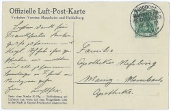 Die Verkehrs-Vereine Mannheim und Heidelberg gaben zu diesem Anlass eine „offizielle Luft-Post-Karte“ zu einem Preis von 20 Pfennig heraus. Diese Karte wurde allerdings nur mit Luftpost befördert, wenn sie auf dem Fluggelände oder in der Stadt in speziell dafür aufgestellte Briefkästen eingeworfen wurde. Als Bestätigung für den Postflug erhielt sie den Sonderstempel „Flugpost Mannheim-Heidelberg 19.5.12“. Wenig später wurde die Flugroute Mannheim-Heidelberg-Mannheim durch die Deutsche Reichspost „amtlich“ zur modernsten Postbeförderungsstrecke erklärt. Mit einem „Grade-Eindecker“ wurde die knapp 20 km lange Strecke zurückgelegt. Der Flugpionier Hans Grade hatte wenige Jahre zuvor den Eindecker erfunden und damit den Motorflug revolutioniert. Mit 12.000 Reichsmark war der Grade-Eindecker das billigste Flugzeug seiner Zeit.