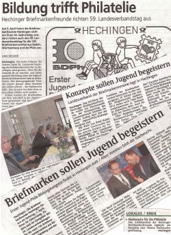 Rund 15 Vereine bekamen zu den Themen Briefmarke und Bildung, Briefmarken AG und Gründung einer Jugendgruppe sowohl Theorie als auch praktische Erfahrungen von Vollprofis vermittelt. Von der ersten Minute an war die Presse anwesend und die zur Begrüßung erschienene Bürgermeisterin Dorothea Bachmann aus der Zollernstadt Hechingen war über eine Stunde anwesend, diskutierte mit und stellte spontan das Rathaus für eine Lehrermultiplikatoren-Veranstaltung zur Verfügung. Bundesvorstandsmitglied Helma Janssen erläuterte das Konzept 'Briefmarke und Bildung', Gymnasialdirektorin Karin Kriesell die aktuelle Umsetzung mit der 5. Klasse am Gymnasium in Haigerloch mit Anschauungsmaterial der Gruppenarbeiten, Hans Steche die Arbeit mit der Briefmarken AG an der Schule in Fellbach und Jugendvertreter Christian Helfert und Hans Pendelin aus Markgröningen die Betreuung einer Jugendgruppe im Verein. Das Konzept hatte sehr hohen Praxisbezug und zeigte die Machbarkeit auf. Jetzt gilt es, die von den Verbänden erarbeiteten Rahmenbedingungen, durch die Vereine umzusetzen und die Zukunft in die Hand zu nehmen. Für weitere Hilfe steht das Expertenteam und die Bundesstelle "Jugend, Familie, Bildung" des BDPh's jederzeit zur Verfügung. |