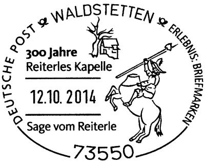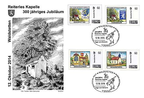 Zum Gedenken wird ein Sonderstempel mit dem Motiv der Reiterles-Kapelle und im Vordergrund dem Reiter Roth auf seinem kopflosen Pferd ausgegeben. Des Weiteren werden eine Erinnerungsansichtskarte und ein Erinnerungsbeleg sowie zwei Briefmarken individuell (Waldstetten & Tannweiler) mit verschiedenen Ansichten der Reiterles-Kapelle und Darstellungen aus der Sage aufgelegt. Ferner werden je eine Briefmarke individuell mit einer Zeichnung der Wißgoldinger Kirche St. Johannes Baptist und der Patrizius Kapelle Weilerstoffel ausgegeben.