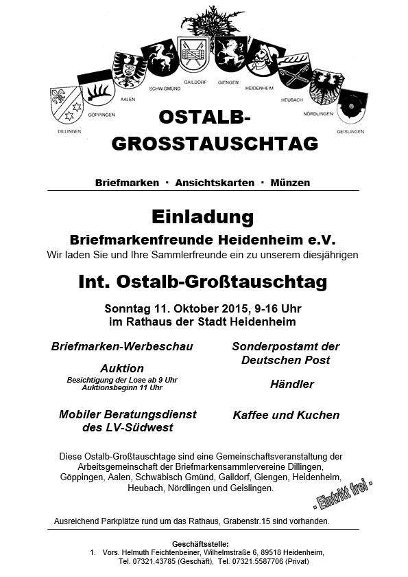 Sonderstempel zum Großtauschtag am 11. Oktober 2015 in Heidenheim