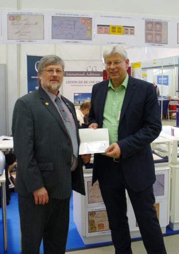 Gestiftet wurde dieser tolle Gewinn von Christoph Gärtner, Inhaber des gleichnamigen Auktions-Hauses. Herr Gärtner übergab den Beleg persönlich an den Geschäftsführer des LV, Wolfgang Zimmermann, damit dieser ihn an den glücklichen Gewinner aus Thüringen versenden konnte .