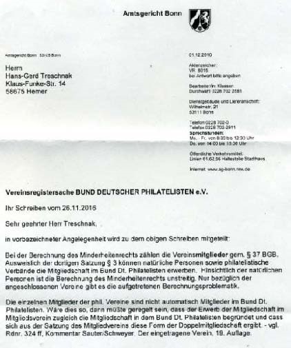 Zehn Mitgliedsverbände hatten im Oktober 2016 beim Amtsgericht Bonn einen