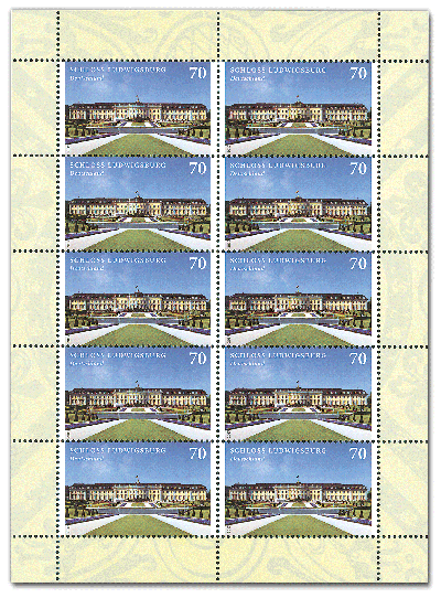 Fotos: Deutsche Post / Bundesfinanzministerium Informationen des herausgebenden Bundesfinanzministerium zur Ausgabe: Serie "Burgen und Schlösser": Schloss Ludwigsburg Schloss Ludwigsburg zählt zu den großen erhaltenen Schlossanlagen des Barock in Deutschland. Herzog Eberhard Ludwig von Württemberg verband damit einen königlichen Anspruch und ließ sie unter Verlagerung der Residenz von Stuttgart nach Ludwigsburg ab 1704 errichten. Die Baumeister Johann Friedrich Nette und Donato Giuseppe Frisoni schufen bis 1733 eine dreiseitige Anlage mit Wohn- und Repräsentationsräumen, ergänzt um zwei Kapellen. Außerdem entstanden Bauten für das höfische Vergnügen: Der Festinbau nimmt einen zweigeschossigen Festsaal auf, im Hoftheater findet bis heute die historische Kulissentechnik ihren Einsatz. Schließlich wurde aufgrund der gewachsenen Repräsentationsbedürfnisse auch die vierte Seite des Hofes mit einem Prachtbau geschlossen, in dem Raumkunstwerke des Barock, aber auch des Klassizismus und Empire überzeugen. Südlich davon erstreckt sich der mit formenreichen Zierparterres gestaltete Schlossgarten, der heute als „Blühendes Barock“ bekannt ist. Parallel zum Schlossbau entstanden auch die planvoll angelegte Residenzstadt, das Jagdschloss Favorite und schließlich das Seeschloss Monrepos. Gestaltung Postwertzeichen: Nicole Elsenbach, Hückeswagen Infos zum Schloss: www.schloss-ludwigsburg.de |