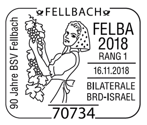 Internationale Briefmarken-Ausstellung FELBA 2018 im Rang 1 Die FELBA 2018 mit der bilateralen Deutschland - Israel im Rang 1 vom 16.-18.11.2018 in der Alten Kelter, Untertürkheimer Str. 33, 70734 Fellbach lädt Aussteller und Besucher schon heute herzlich ein. Wir freuen uns auf Sie.