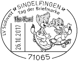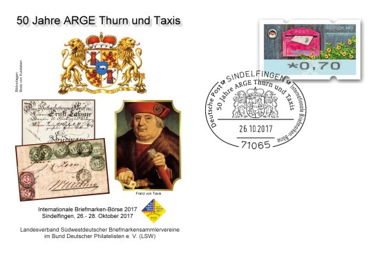 | Meldung vom 23.10.2017: | Landesverband Südwestdeutscher Briefmarkensammlervereine Internationale Briefmarken-Börse Sindelfingen, 26. - 28.10.2017 |