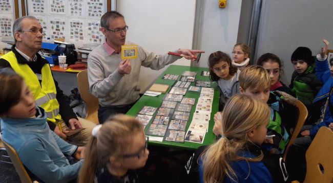 MMB Friedrichshafen in Vorbereitung Mit Volldampf geht es nach den Jugend-Eisenbahntagen weiter in Richtung MMB (Mineralien, Münzen und Briefmarken) in Friedrichshafen. Am Sonntag, 21. Januar 2018, ab 9:00 Uhr locken wieder zahlreiche Jugendaktivitäten der Jungen Sammler Friedrichshafen und des Landesrings Südwest kleine und große Briefmarkenfans an den Bodensee. Neben der Messerallye ist die Briefmarkenauktion jedes Jahr der Höhepunkt am Jugendstand. Auch dieses Mal gehen ab 11:00 Uhr zahlreiche bunte Briefmarkensteckkarten über den Tisch. Bezahlen müssen die Kinder natürlich nur fiktiv - mit Spielgeld. Neben dem Aussuchen von Briefmarken für die eigene Sammlung können auch Ausstellungsblätter gestaltet und beschriftet werden.