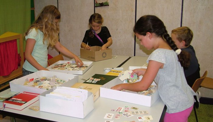Alles wurde auf den Tischen ausgebreitet und war heiß begehrt. Zum Auftakt galt es soviel wie möglich unterschiedliche Werte aus verschiedenen Dauerserien zusammenzustellen. Danach konnten die Kinder ihre individuellen Motive heraussuchen und fanden dann auch zahlreiche Stücke. Selbstverständlich durften die gefundenen Marken und Belege mitgenommen werden. Ein Teil der Kinder hatte zuhause bereits eigene Marken oder konnte sich jetzt einen Anfangsbestand anlegen. Die Kinder im Alter von 8 bis 11 Jahren waren wissbegierig und wollten zur einen oder anderen Marke zusätzliche Informationen, die durch einen gemeinsamen Blick in die Kataloge zu erhalten waren. Der Umgang mit Lupe und Pinzette konnte dabei gleich mit eingeübt werden. Die Teilnehmer bewiesen wieder eine erstaunliche Ausdauer. Die Zeit verging wie im Fluge und am Ende der Veranstaltung waren die Kinder sichtlich zufrieden. Es zeigt sich einmal mehr, dass Briefmarkensammeln trotz zahlreicher weiterer Verlockungen nach wie vor eine faszinierende Freizeitbeschäftigung sein kann. Bild und Text: Thomas Preiß |