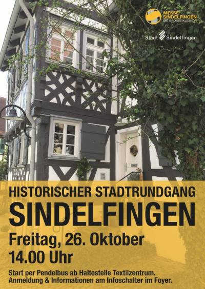 Kennen Sie die romantisch-historische Altstadt von Sindelfingen? Am Freitag, den 26. Oktober 2018, lädt die Wirtschaftsförderung Sindelfingen GmbH die Besucher der Internationalen Briefmarken-Börse zu einem kostenlosen historischen Stadtrundgang ein. Bereits seit Jahrtausenden leben Menschen auf dem heutigen Sindelfinger Terrain. Im Jahr 1263 wurde die Stadt gegründet, damals schon bestand die Martinskirche als Mittelpunkt des Chorherrenstifts, das weit über die Region hinaus bekannt war. Bei diesem historischen Stadtrundgang können Sie noch viele alte Spuren entdecken – ein Spaziergang voller Geschichte! Der Bus startet um 14:00 an der Haltestelle Textilzentrum, die Stadtführung beginnt um 14:30 Uhr an i-Punkt Sindelfingen. Die Rückfahrt ist für 16.15 geplant. Anmeldung ab Donnerstag, 25. Oktober, im Foyer der Messe Sindelfingen.