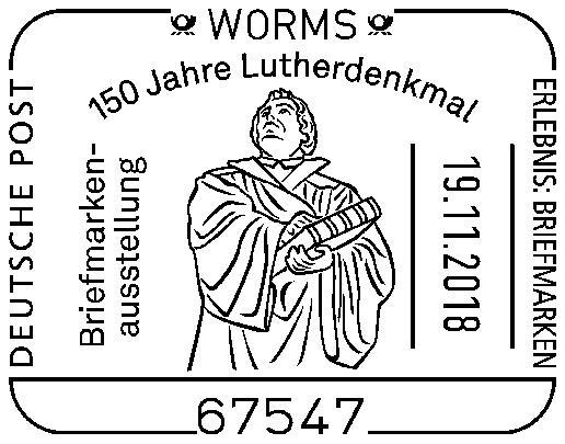 | Meldung vom 22.10.2018: | Briefmarkensammlerverein Worms e.V.: Briefmarkenausstellung „150 Jahre Lutherdenkmal Worms“ |