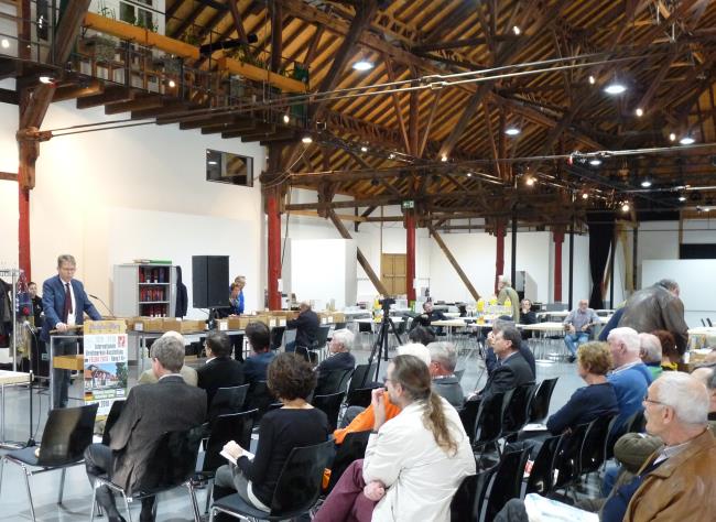 Die eindrucksvolle Kulisse der 'Alten Kelter' bot auch für die Eröffnung um 9 Uhr den passenden Rahmen (Redner am Pult links: BDPh-Präsident Alfres Schmidt). Foto: Detlev Moratz |