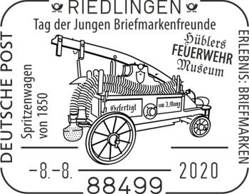 80+40 Cent, 95+45 Cent und 155+55 Cent. Bei der Veranstaltung der Jungen Briefmarkenfreunde Riedlingen wird neben einer Sonderpostfiliale eine Briefmarkenausstellung, ein Briefschreibeworkshop, ein Malwettbewerb, Postrallye durch die Innenstadt und ein kurzweiliges Programm für alle Briefmarkenfreunde angeboten. Nähere Informationen zu Programm und Sonderpostamt findet man unter http://www.bsv-riedlingen.de in der Rubrik „Aktionstag 8. August 2020“. Ansprechpartner ist Christian Helfert, Berliner Str. 51, 88499 Riedlingen, Tel. 07371/909884, Mail: helfert@bsv-riedlingen.de. Mit “Hüblers Feuerwehrmuseum“ (https://www.feuerwehrmuseum-riedlingen.de) hat sich ein Riedlinger Feuerwehrmann seinen Traum erfüllt. In unermüdlicher, jahrelanger Kleinarbeit ist mitten in der historischen Riedlinger Altstadt in einer ehemaligen Scheune ein beeindruckendes privates Feuerwehrmuseum entstanden. Am gleichen Wochenende findet in Hermeskeil im "feuerwehr erlebnis museum" (www.feuerwehr-erlebnis-museum.de ) ebenfalls eine Zentralveranstaltung zum „Tag der Jungen Briefmarkenfreunde“ statt. Ansprechpartner ist Heinz Wenz, Henneystr. 35a, 54293 Trier, Telefon: 0651/64558, Mail: wenz@dphj.de. Beide Veranstaltungen sind jeweils von 10 bis 17 Uhr geöffnet.