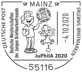 | Meldung vom 18.10.2020: | Deutsche Philatelisten-Jugend e.V. (DPhJ): Deutsche Mannschaftsmeisterschaften (DMM), Stiftungswettbewerb und Regionale Ausstellung der Jugend in Mainz |