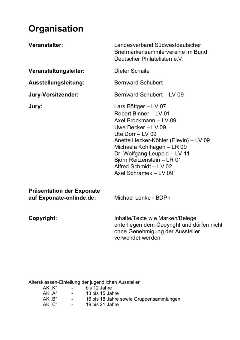 Katalog der Exponate zur Regionalen Ausstellung SÜDWEST 2021 ONLINE - 1. bis 31. Mai 2021