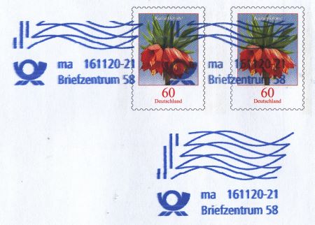 Die Deutsche Post AG will offensichtlich auch bis März 2021 ihre Stempel auf blaue Farbe umstellen. Dies soll die Briefzentren betreffen. Zu Schalter- und auch Sonderstempeln sind bislang noch keine Zeiträume bekannt.