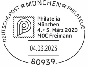 Mit dabei ist auch wieder die Deutsche Post, die eine Messe-Ganzsache herausgeben wird. Sie thematisiert den 100. Geburtstag von Loriot mit einer passenden Illustration und dem eingedruckten 85-Cent-Sonderpostwertzeichen „Zeichnung Loriot im Sessel“ vom 2. November 2023. Die ArGe Münchner Philatelistenvereine hat einen Sonderstempel zum 50. Jahrestag des Gewinns der Fußball-Weltmeisterschaft im Münchner Olympiastadion 1974 beantragt. Voraussichtlich wird die Deutsche Post insgesamt zwei Sonderstempel einsetzen.