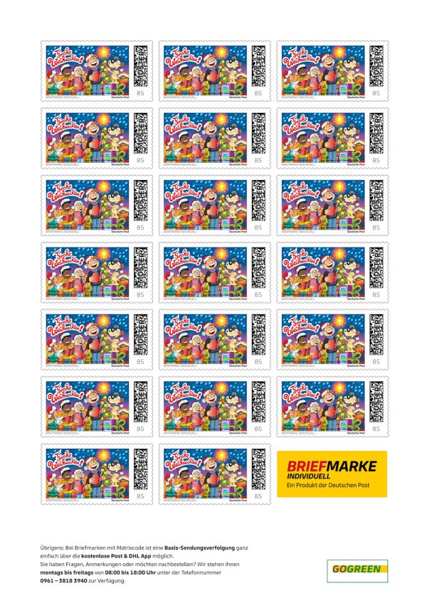 Welche Briefmarke für die Weihnachtspost nehmen? Die DPhJ-Weihnachtsmarke 2024! Bereits in den letzten Jahren hat die Deutsche Philatelisten-Jugend (DPhJ) Weihnachtspost-Schreiber mit einer speziellen Weihnachtsmarke unterstützt. Auch in diesem Jahr gibt es eine DPhJ-Weihnachtsmarke. Was ist absolutes Pflichtprogramm bevor es das Festessen und die Geschenke gibt? Natürlich das gemeinsame Singen von Weihnachtsliedern. Auch Fridolin und seine Freunde singen kräftig mit und werden dabei von Filu dirigiert. Sie möchten ebenfalls Ihrer Weihnachtspost den besonderen „Sound“ verleihen? Dann bestellen Sie schnell - jedoch spätestens bis zum 31.10.2024 - bei Heinz Wenz, Henneystr. 35a, 54293 Trier (Mail: wenz@dphj.de). Bestellungen sind auch auf unserer DPhJ-Homepage unter weihnachtsmarke.dphj.info möglich. Bei späterem Eingang der Bestellung kann leider keine rechtzeitige Lieferung garantiert werden. Die DPhJ-Weihnachtsmarke wird – natürlich in der aktuell gültigen Portostufe von 85 Cent – auf einem Bogen zu je 20 Marken hergestellt. Ein Muster ist im Dateianhang beigefügt. Ein Bogen kostet für Vorbesteller bei der Bestellung von