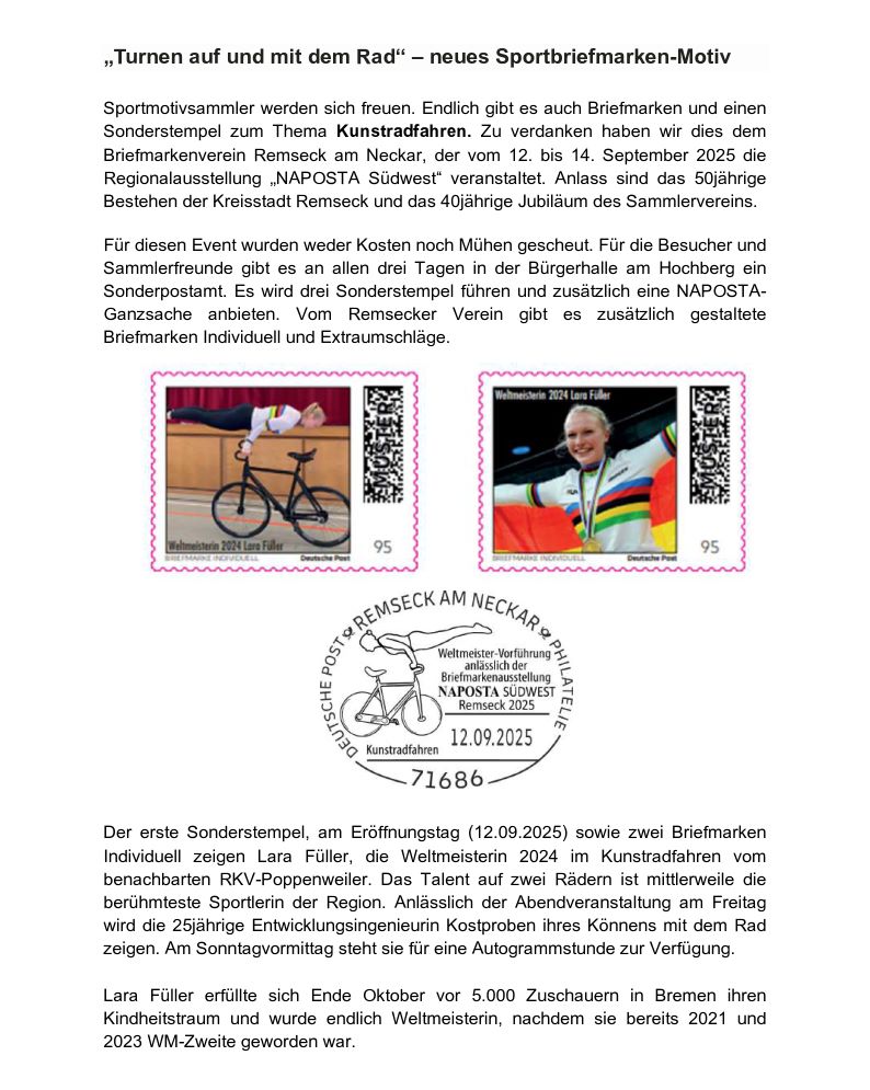 NAPOSTA SÜDWEST Remseck 2025 vom 12. bis 14. September 2025