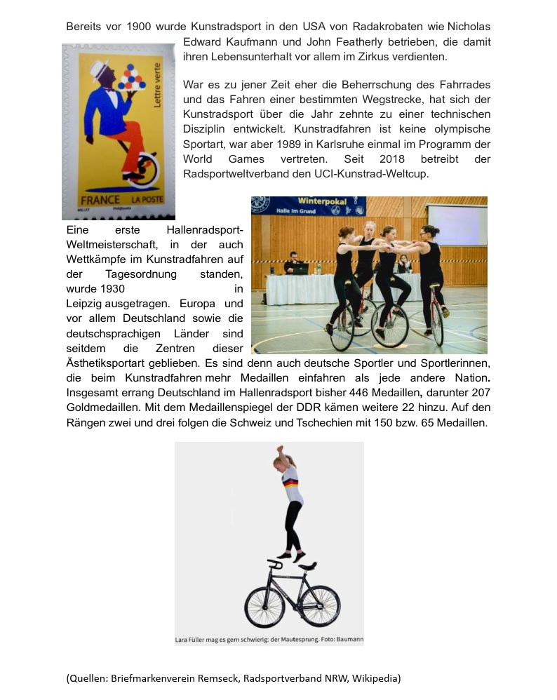 der mit Remseck verbunden ist, ist das Kunstradfahren.
