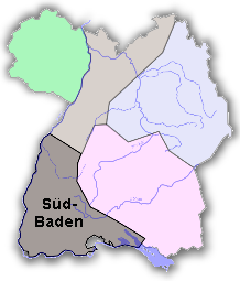 Das Gebiet der Region Süd-Baden umfasst 16 angeschlossene Vereine, die sich im Raum Bad Säckingen (südlichster Verein), Lörrach (äußerster Südwesten), Freiburg (westlichster Verein), Offenburg (nördlichster Verein) und Konstanz (östlichster Verein) befinden.